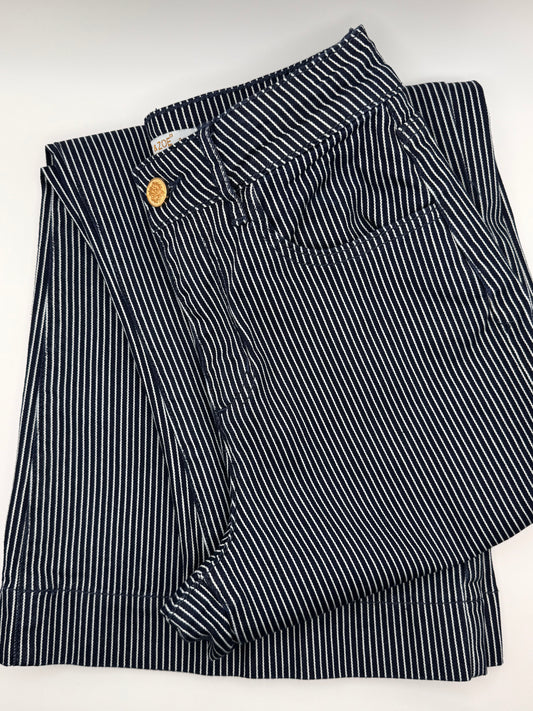 Jeans large bleu marine à rayures blanches