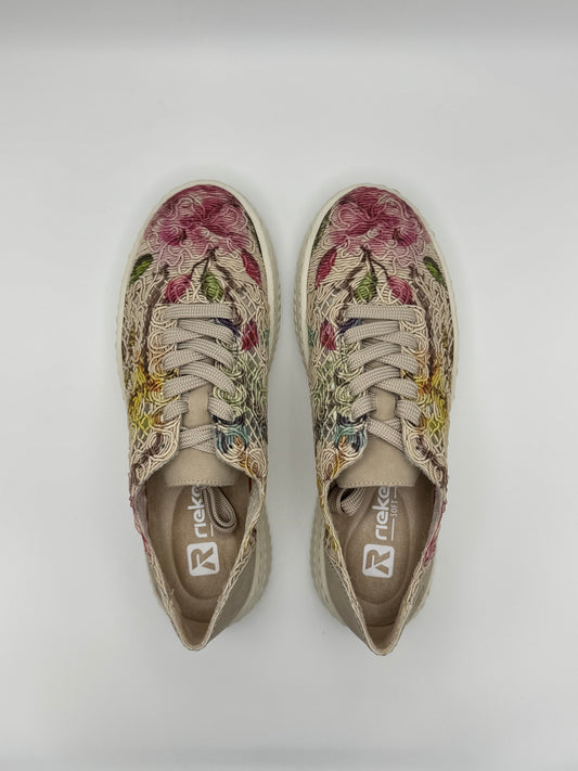 Les sandales oranges avec la grosse fleur V1783-90 Rieker