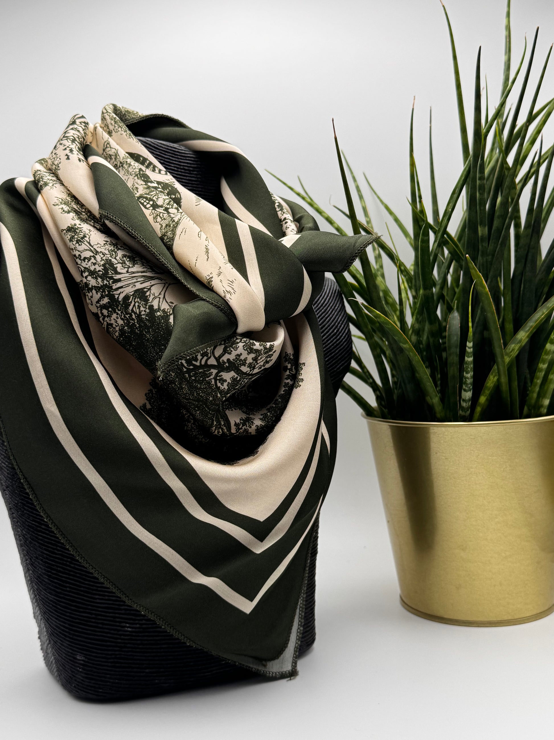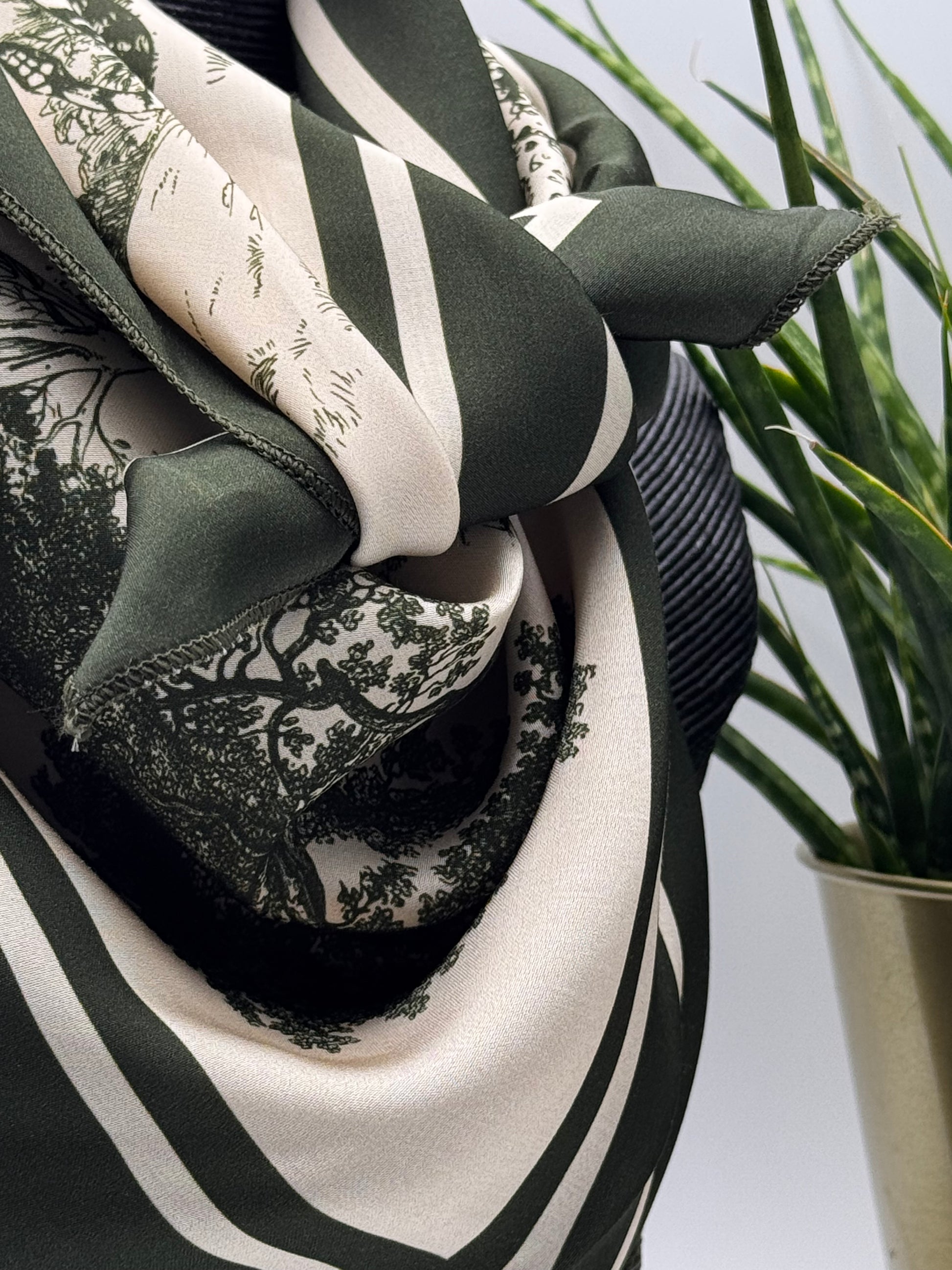 Plongez dans l’élégance intemporelle avec notre foulard “Jungle Chic”, une pièce raffinée qui célèbre la beauté sauvage de la nature.