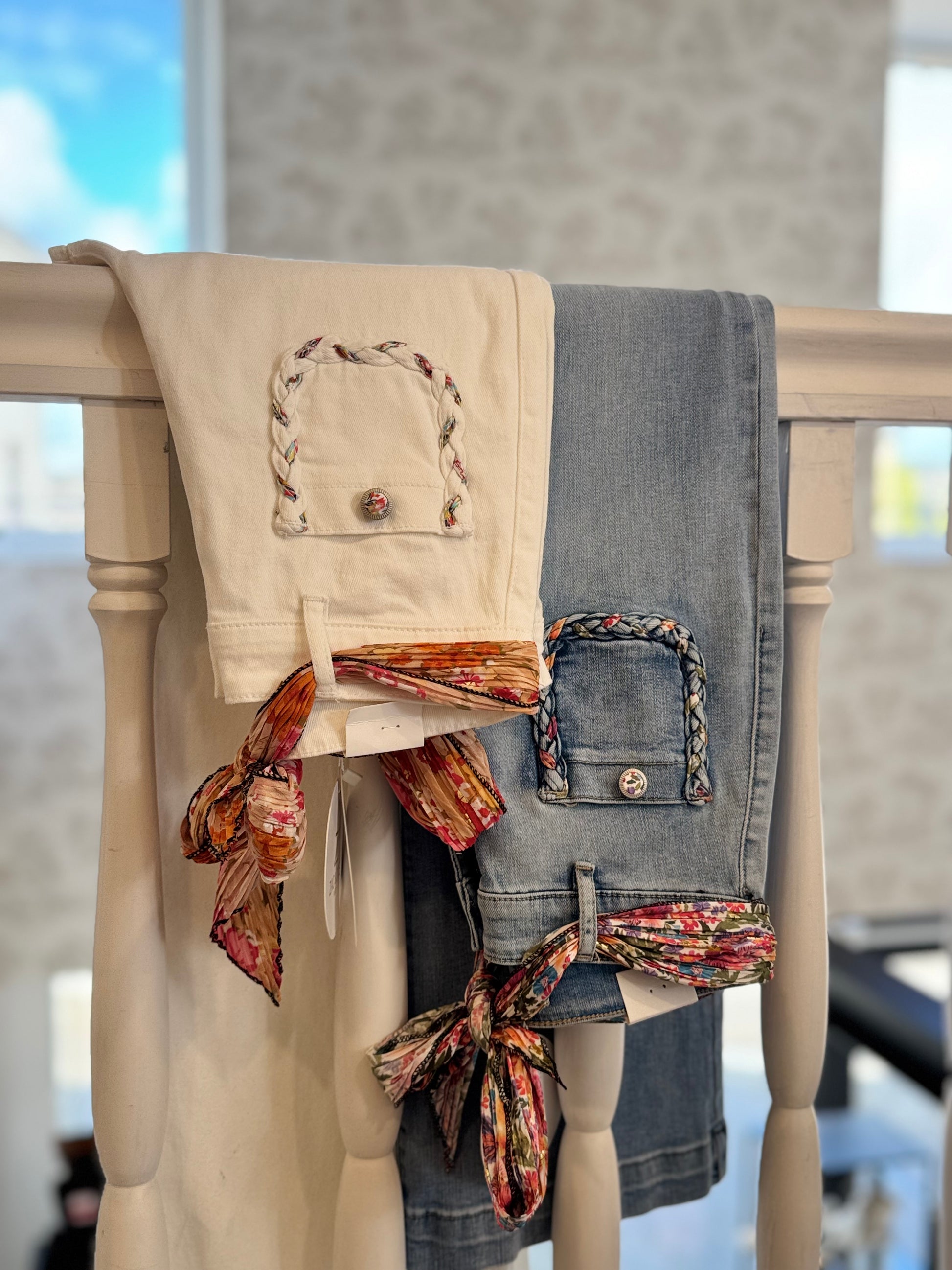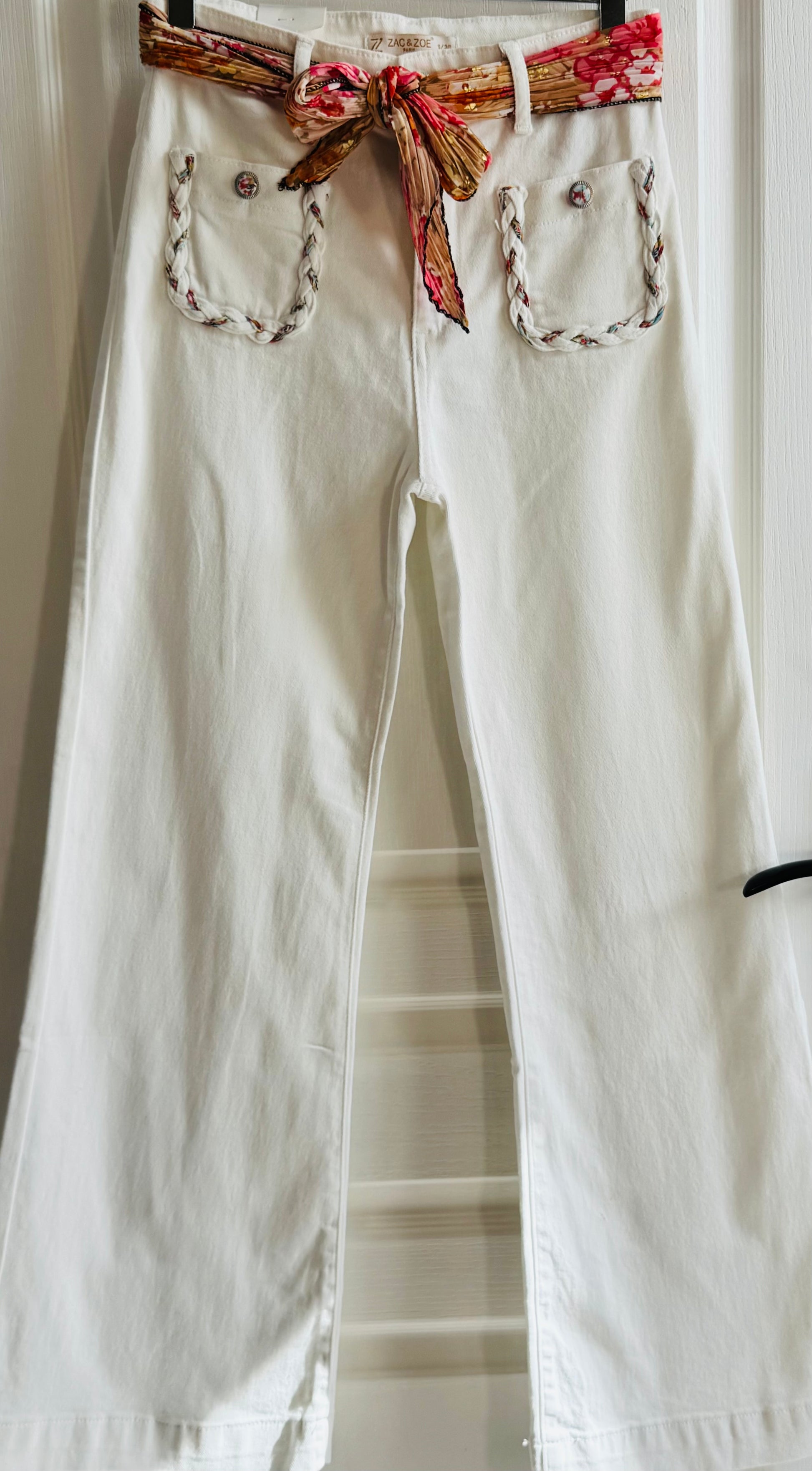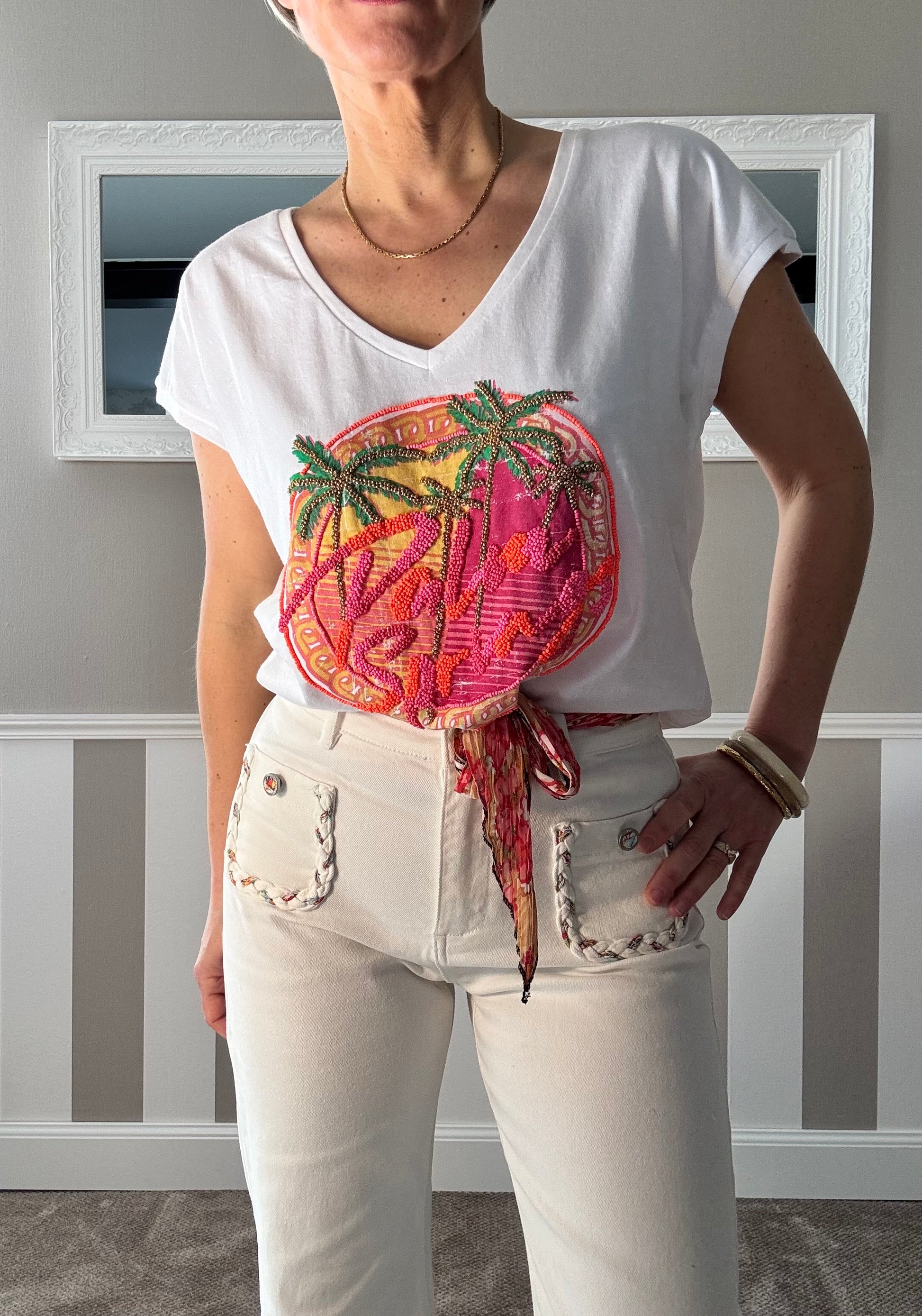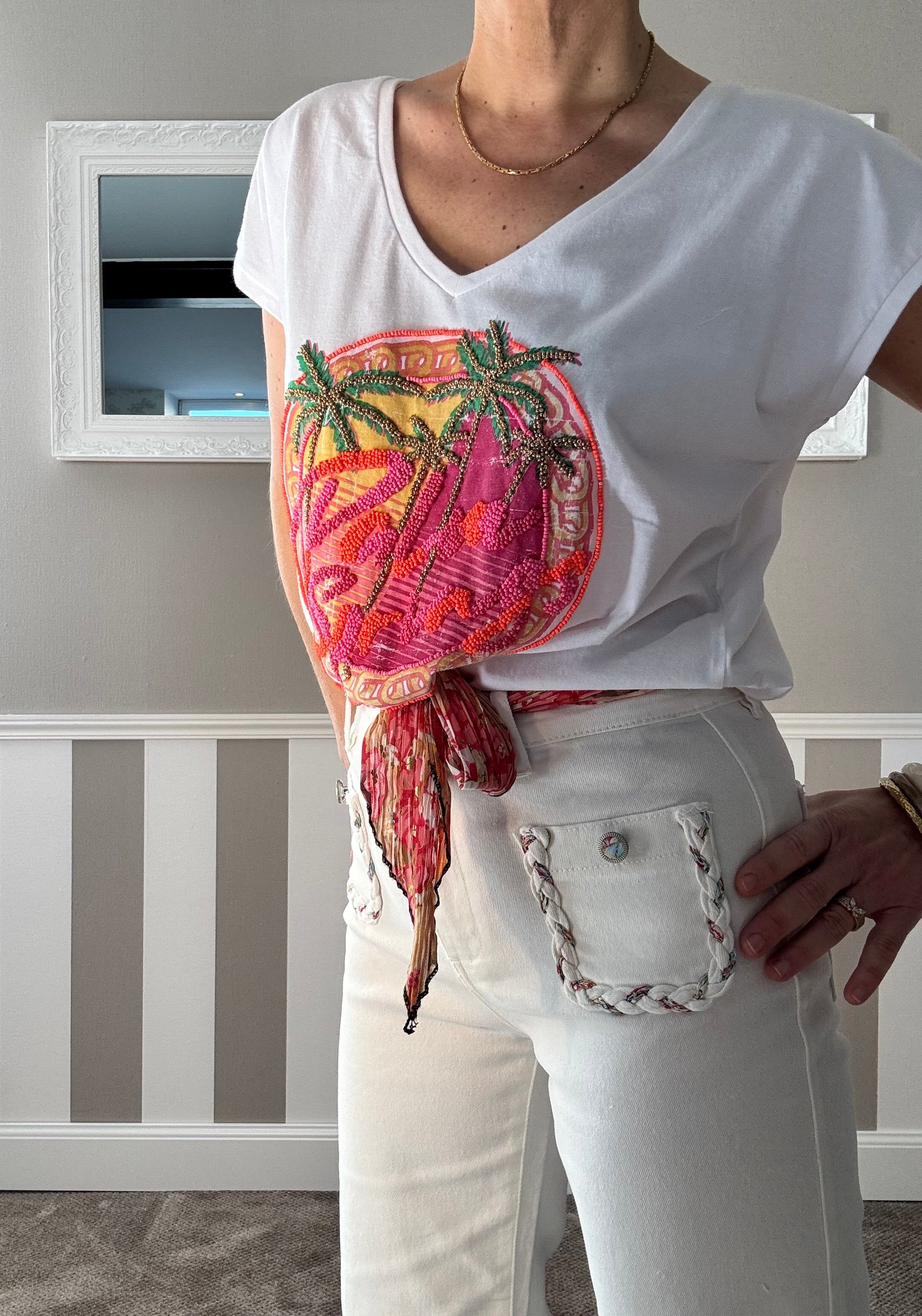 Jean’s blanc à motifs en perles Sun&Ibiza