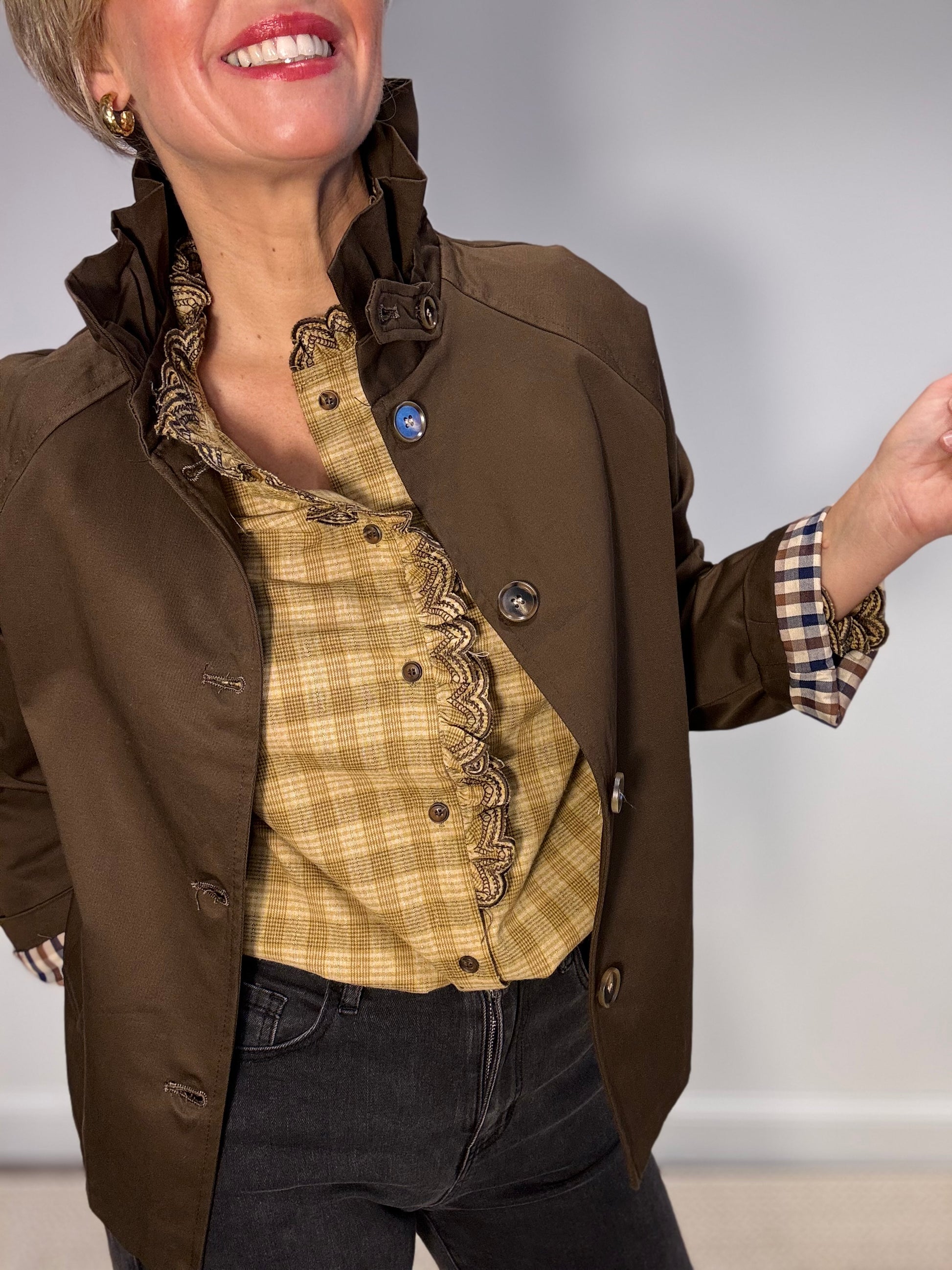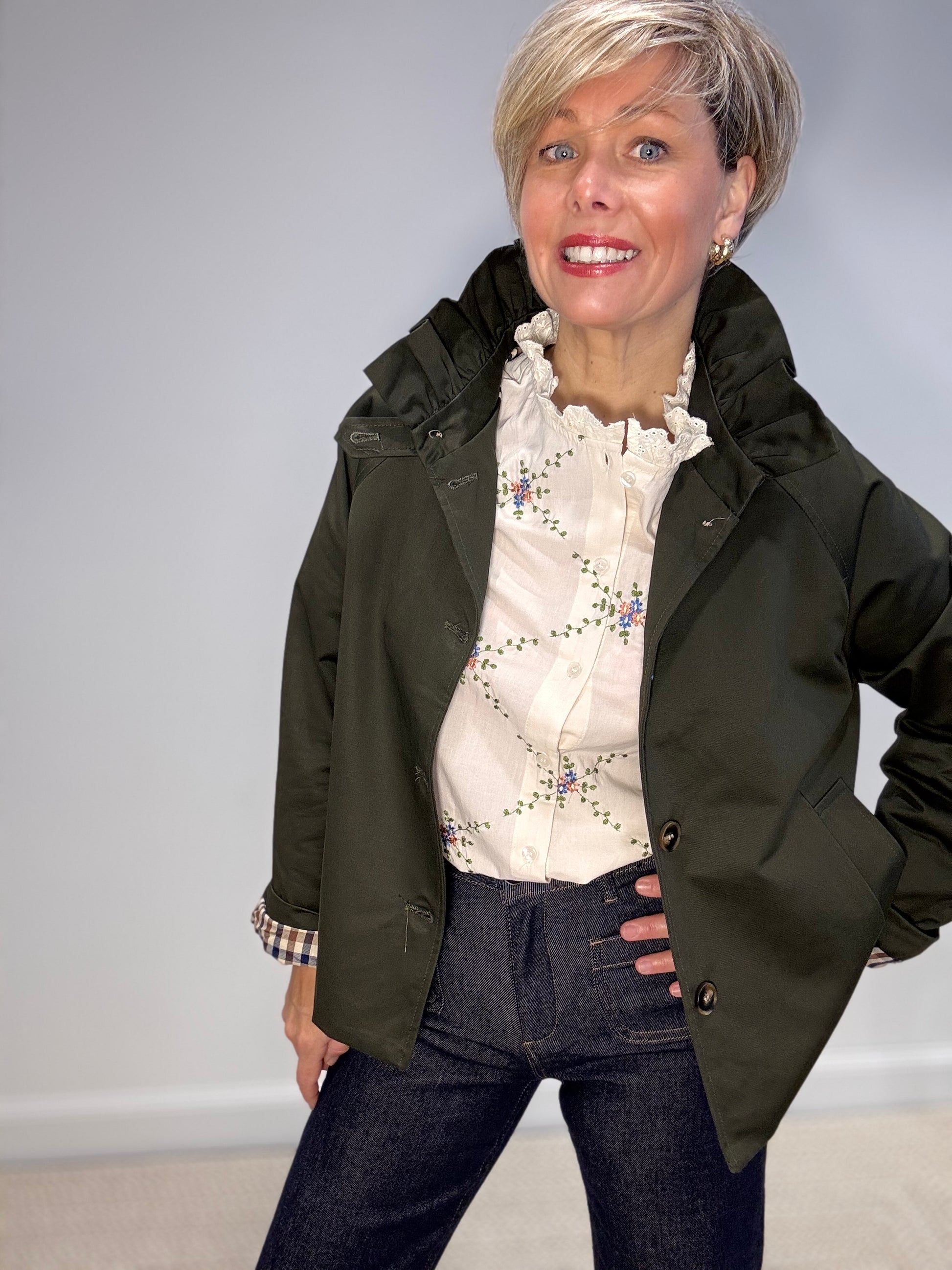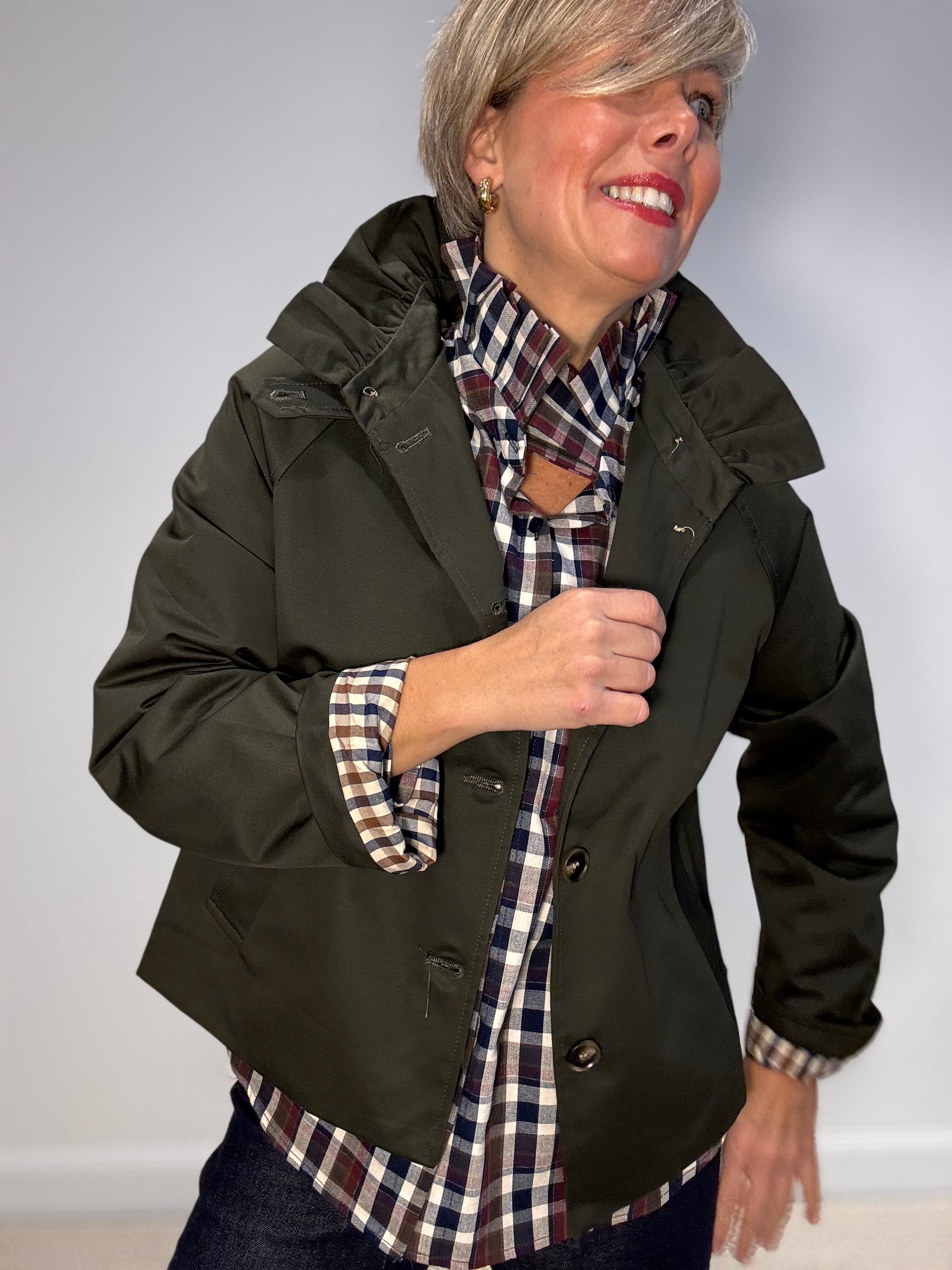 Trench court façon crop à col froufrou – la touche chic et audacieuse