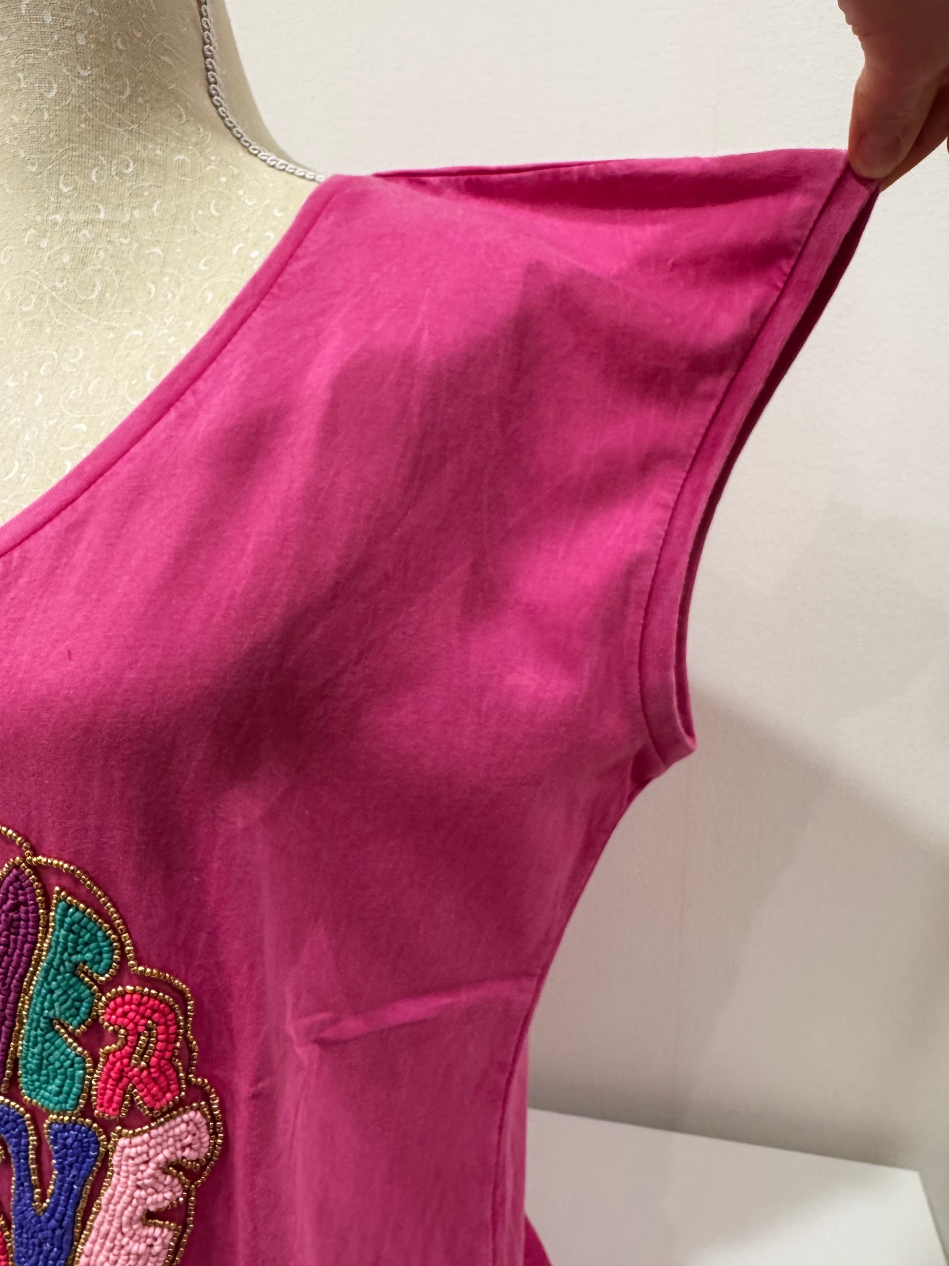 Tee shirt col V en coton avec logo en perles de couleur