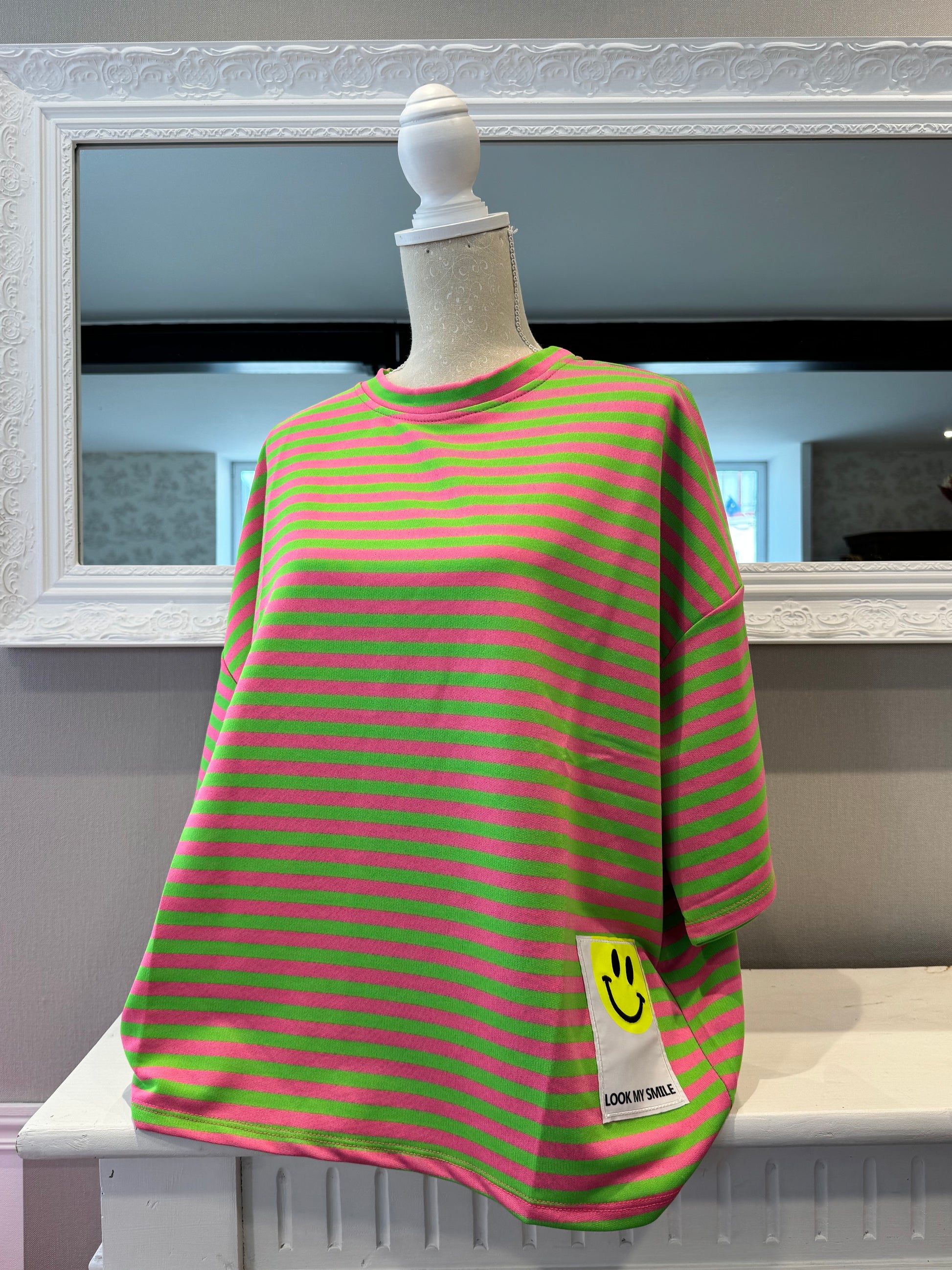 Rayures fluo, coupe ultra confortable et détail smiley qui donne le ton : bonne humeur obligatoire.